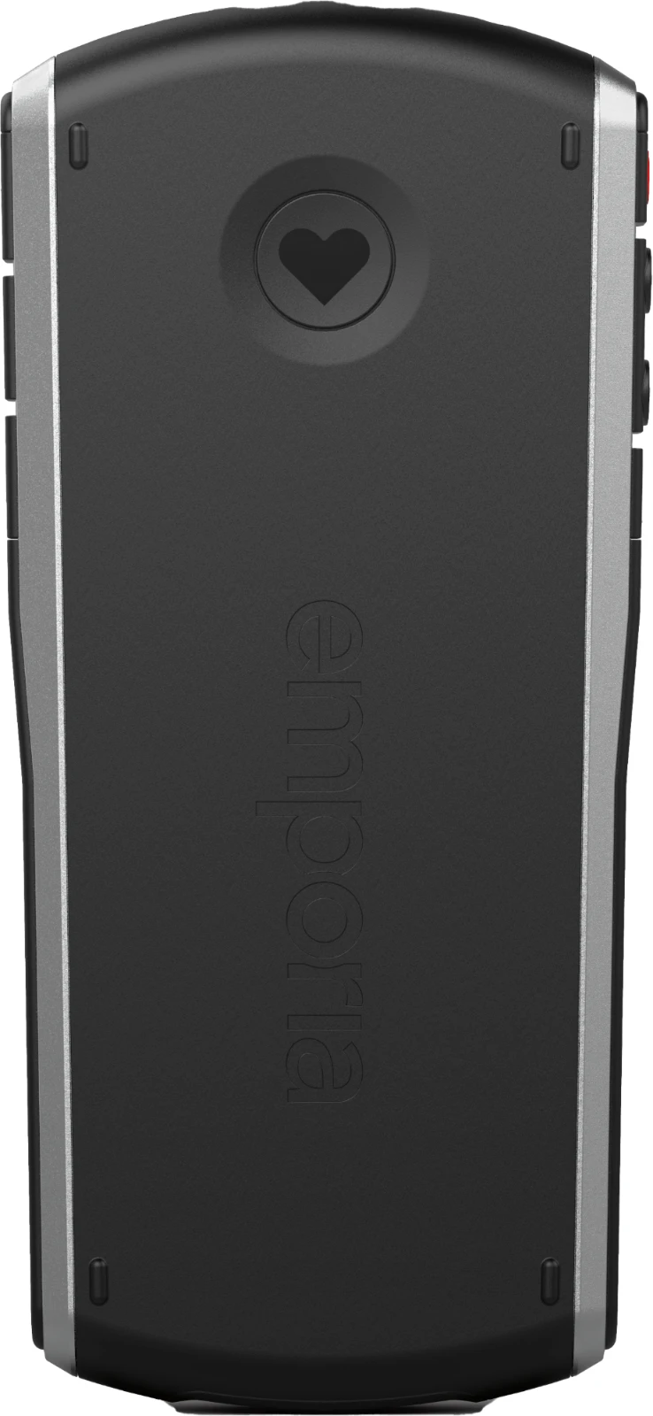 Auf der Rückseite ist das Telefon mit der bewährten, patentierten emporia Notruffunktion ausgestattet, mit der schnell und unkompliziert Hilfe verständigt werden kann. Einfach die Taste mit dem Herz drücken, und schon wird die Rettungskette aktiviert.