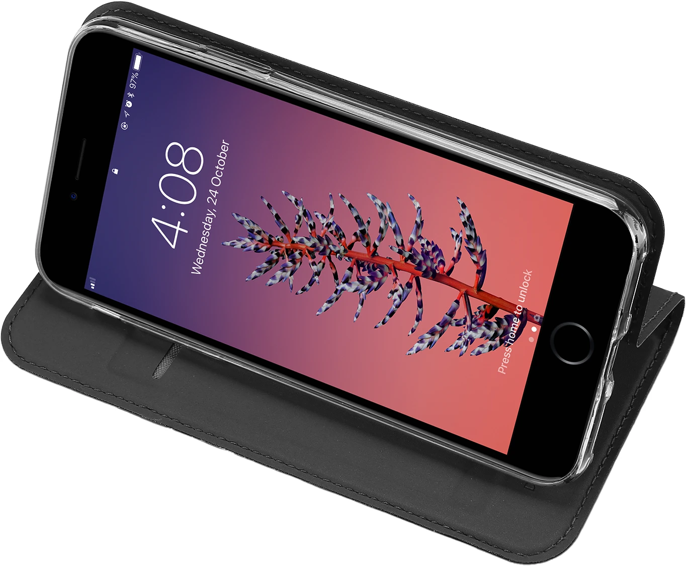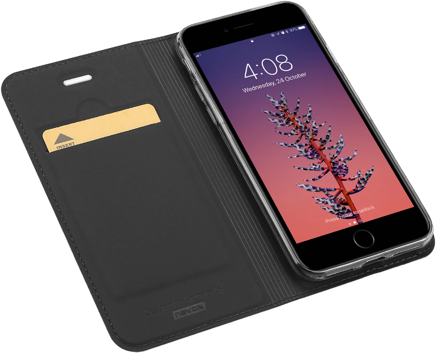 Beim Umklappen der Frontklappe wird diese ebenfalls durch die Magneten auf der Rückseite fixiert, somit ist ein bequemes Telefonieren und Bedienen sichergestellt.