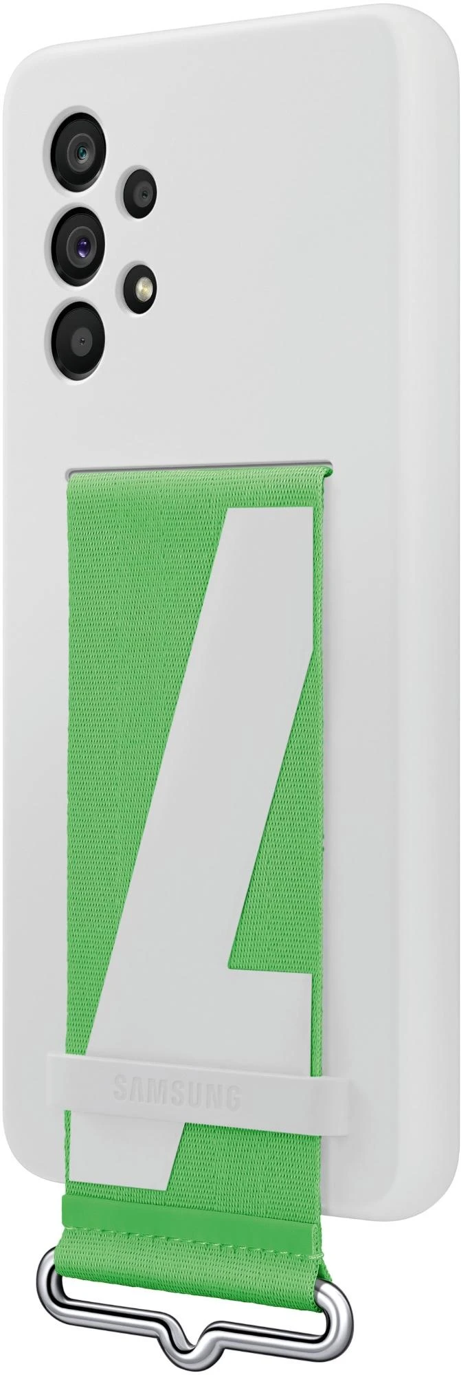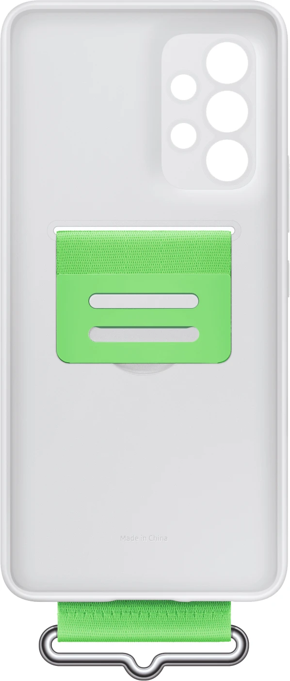 Das Silicone Cover with Strap für das Galaxy A53 5G ist teilweise aus recyceltem Material hergestellt und wird in einer praktischen Verpackung geliefert, die Plastik durch Papier ersetzt.