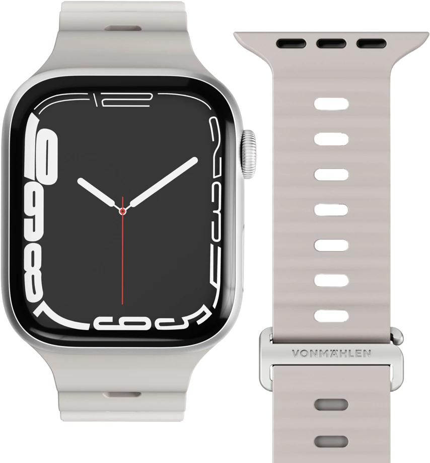 Wave Band 2 ist unser sportliches Silikon Armband für deine Apple Watch und ideal für alle Liebhaber von Wassersport. Das wasserabweisende, recycelte Silikon hält deine Apple Watch sicher am Handgelenk und ist ein stylisher und funktionaler Begleiter für jede Abenteuerlust.