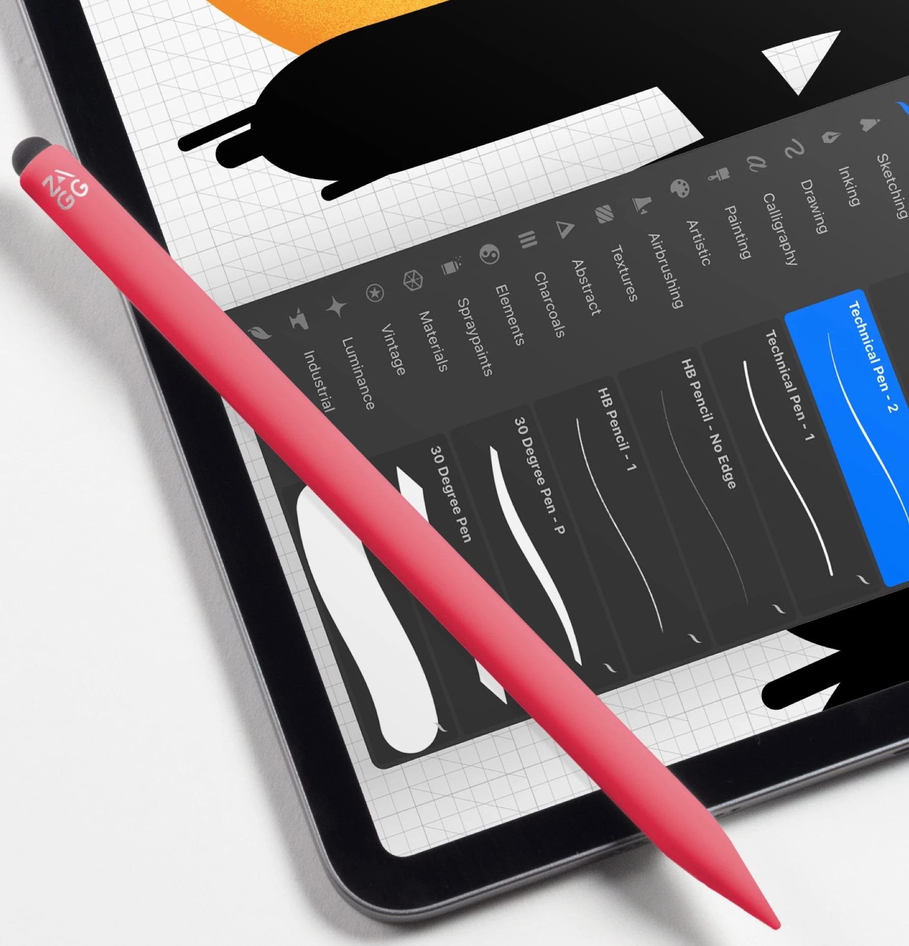Neigungserkennungsfunktion: Der Pro Stylus 2 verfügt über eine Neigungserkennung, sodass Sie die Breite Ihres Schlags variieren können.